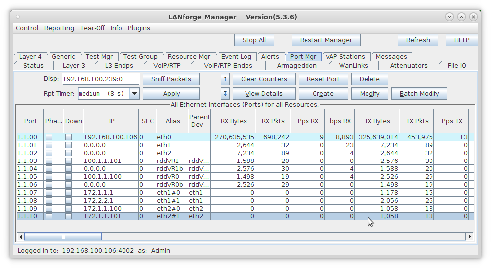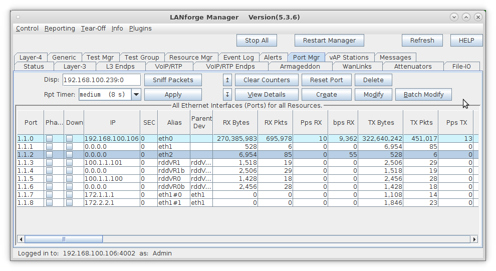 - LANforge is now ready to accept incoming traffic on eth0, the single physical port that is connected to a Routed Mode WanLink