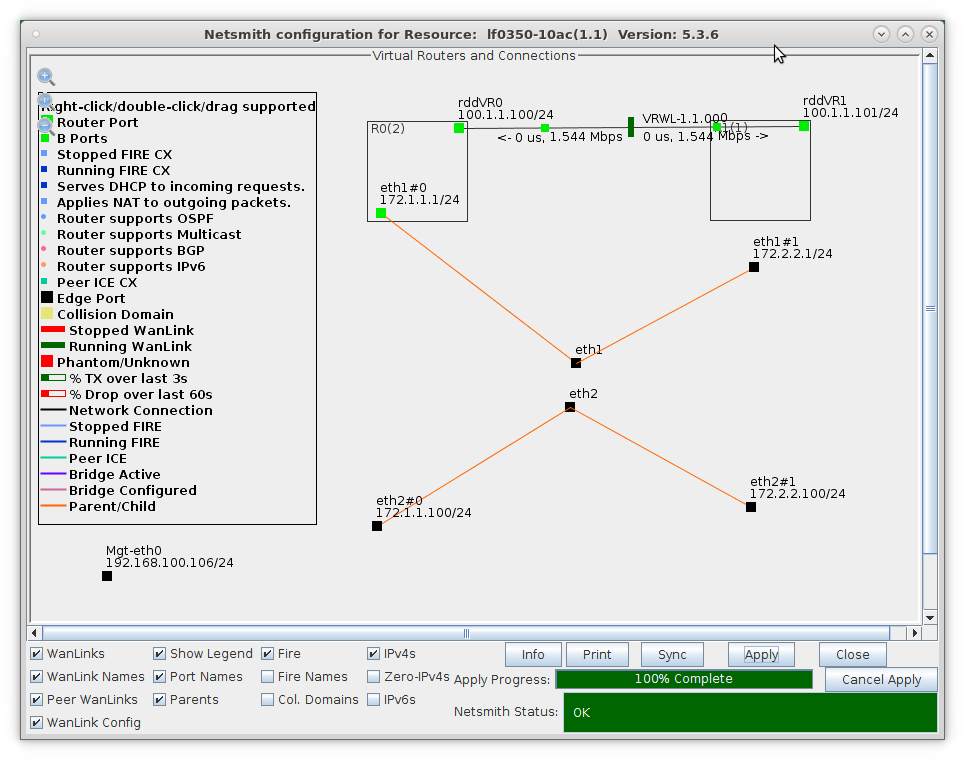 - Also, note the Netsmith Apply Progress bar displayed at the bottom of the Netsmith window