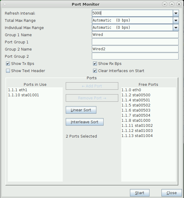 | You can display a series of meters for one or more ports with a nice demo window for traffic speed. For this demonstration, we have configured a station, an upstream port, and a Layer-3 connection to generate traffic. |
