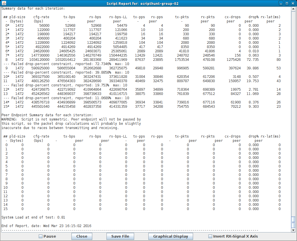 | ScriptHunt is a script that runs connections or 'iterates' and changes tx-rates until a maximum acceptable tx-rate is reached. This can be done for multiple payload sizes and attenuations. Using a Test Group along with ScriptHunt allows you to test multiple connections at the same time. This cookbook assumes ports and connections are already created and configured. The following areas will be covered: - Creating and Configuring Test Groups - ScriptHunt setup - Running ScriptHunt and checking results - Using additional Test Groups for alternate tests |