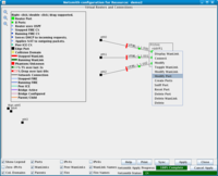 The Netsmith window provides a real-time view of WanLinks and other LANforge entities. A movable legend is displayed in the upper-left portion of the Netsmith window. Edge ports appear as solid black squares and are accompanied by a red outline if the port has no link. Any objects drawn as a solid red square are not currently found in the LANforge system, even though the Netsmith has been configured such that they (should) exist. This can happen if interfaces or WanLinks were removed after Netsmith had discovered them, or if new WanLinks or connections have been created in Netsmith, but the changes have not been Applied yet. If these should really be deleted, just right-click and delete the offending objects and Apply the changes.
